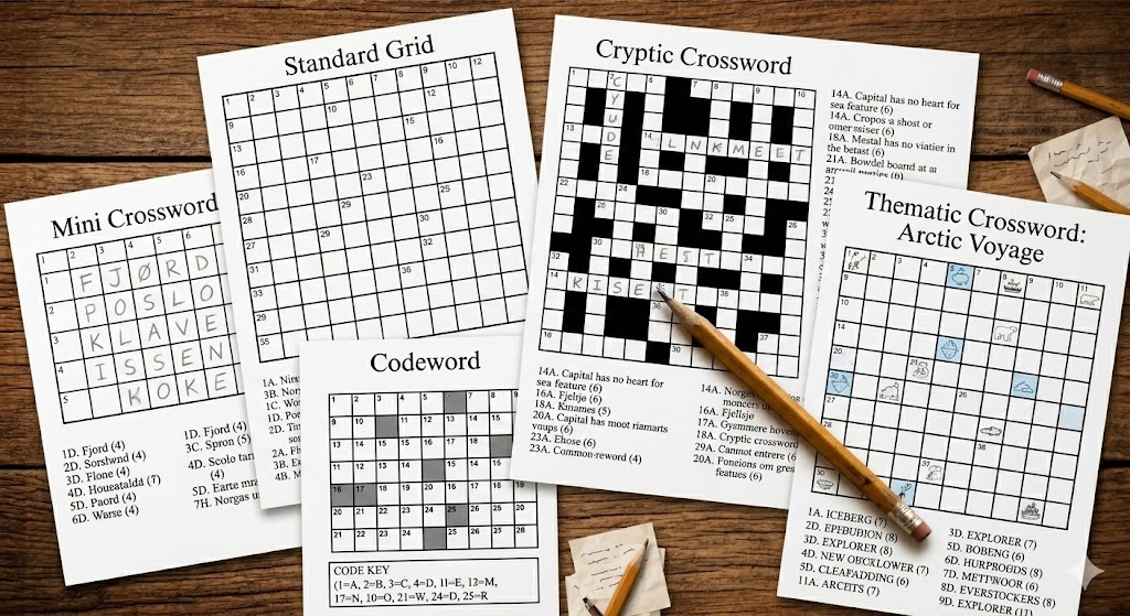 • Kryptiske kryssord: Avanserte ordspill og anagrammer.